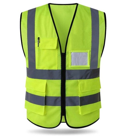เสื้อกั๊กเพื่อความปลอดภัยบนท้องถนนสีเหลืองของผู้ชายเสื้อผ้าสะท้อนแสง Hi VIS มีกระเป๋ากันน้ำราคาขายส่ง