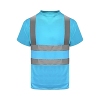 Hycoprot เสื้อยืดสีฟ้าท้องฟ้าผ้าฝ้ายระบายอากาศได้ดีแขนสั้นผ้าเมชแบบสะท้อนแสงมองเห็นได้ชัดเจน